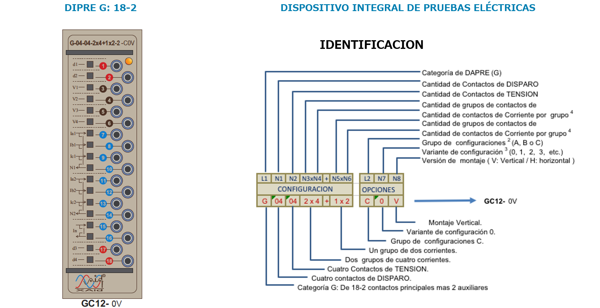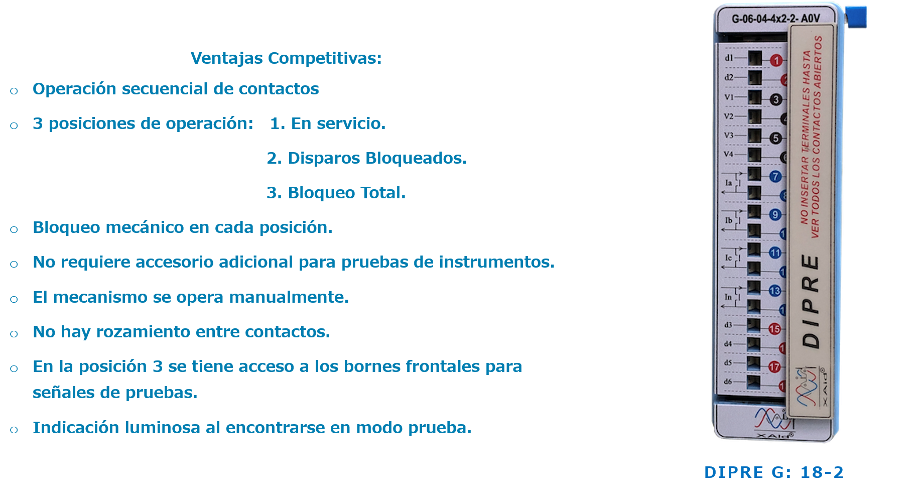 DESCRIPCIÓN: Dispositivo Auxiliar que interconecta los instrumentos de Protección y medición con el equipo primario de los sistemas eléctricos de potencia. Cuenta con contactos para señales de Corrientes, Potenciales y Disparos que se conmutan secuencialmente al accionar su mecanismo de operación.