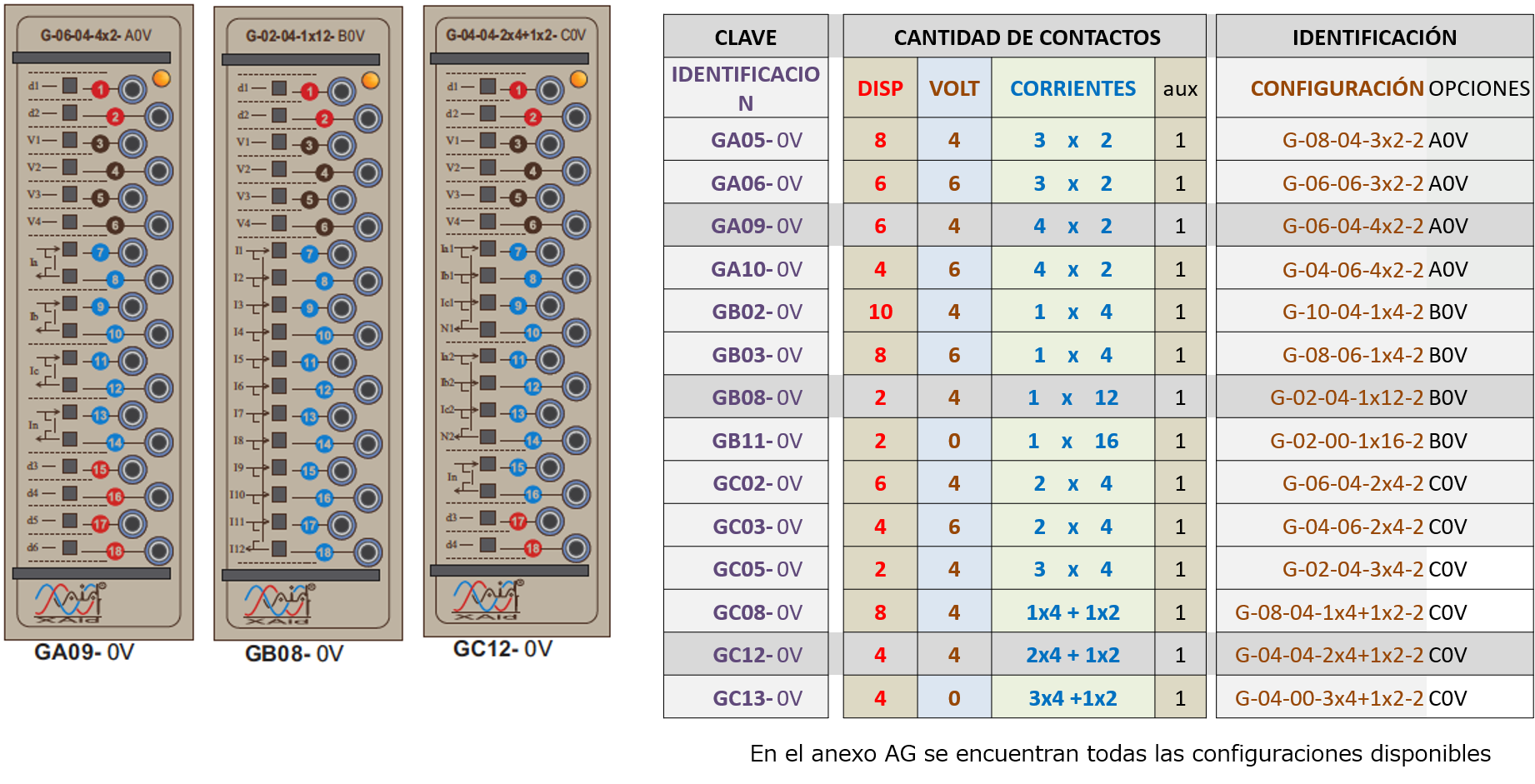 Cuenta con 18 contactos principales para Corrientes, Tensiones y Disparos.