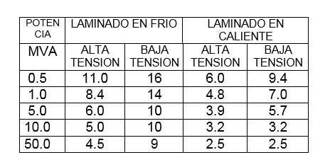 En los transformadores modernos fabricados con láminas de acero rolados en frío se opera con densidades de flujo mucho mayores que con aceros rolados en caliente, obteniéndose niveles similares de pérdidas por histérisis. Esto causa que los niveles de saturación se eleven mucho más, al igual que la «corriente  de Inrush».