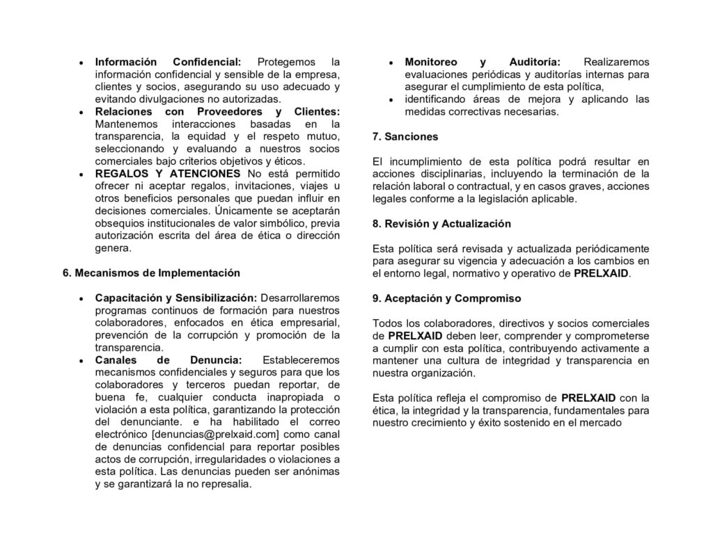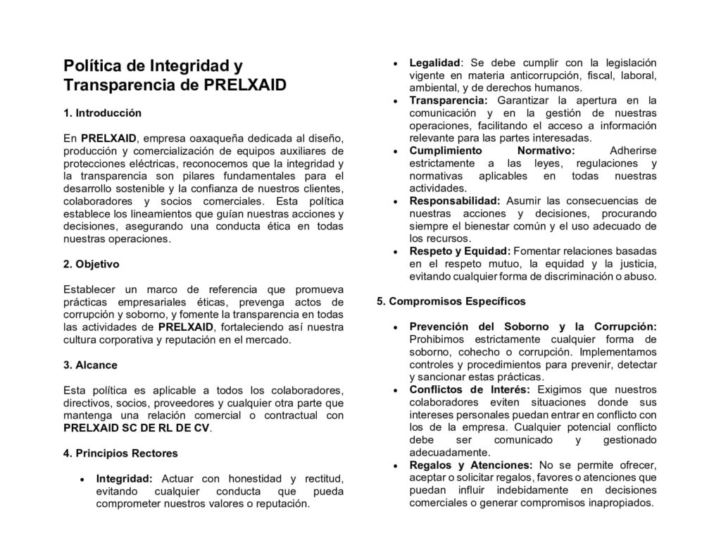 POLITICA DE INTEGRIDAD Y TRANSPARENCIA